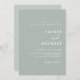 Moderno, schlicht, elegante Hochzeiteinladungskarte em einem Grau-Grün, Weiß. Editiere dein Produkt einfach em wenigen Minuten. Über "weiteres personalisieren" können Schriftart/Größe/Farbe und Position verändert werden.