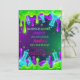 A sticky and gooey neon slime birthday invitation featuring bubbling green and purple toxic sludge dripping over a dark background with science lab flasks. Perfect for a messy science or slime-themed birthday party.Science Birthday Invitation Science Invite.