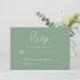 Espetáculo minimalístico moderno, personalizável tipografia de scripts brancos, convite elegante de cartão de resposta RSVP. O fundo cor de sábio com caligrafia branca adiciona um toque de tranquilidade e elegância clássica.