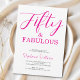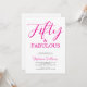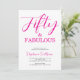 Convite de aniversário de 50 anos moderno minimalista rosa e preto com o script "Cinquenta e Fabuloso" que você pode personalizar e enviar para a celebração do seu aniversário de cinquenta anos. As palavras "Cinquenta e Fabuloso" são definidas usando tipografia de fonte script popular. As cores do texto podem ser alteradas usando o menu de edição.