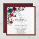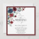 Convite Script de Aquarela Floral Azul Marinho Burgundy