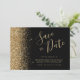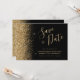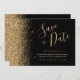 A borda esquerda deste elegante moderno salve a data card apresenta uma borda falsa dourada. O texto personalizável combina um script de escrita manual cor-de-ouro pálida, fontes copperplate e itálico em um fundo preto. O verso apresenta um design de brilho preto e dourado correspondente.