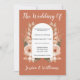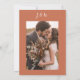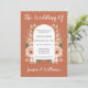 O tema trending Rust Wedding está aqui! Esta design tem um fundo de terracota com roteiro de caligrafia e foto do casal a ser casado. Ele tem um design floral cor de laranja na frente e uma foto de casal na parte de trás. Personalize facilmente o convite para o casamento clicando em personalizá-lo e preenchendo os detalhes do casamento e as fotos.