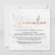 Cartões na moda e modernos de cerimônias de informações de casamento com fontes de script de folha de ouro faux de tendências, fundo de mármore branco e espaços reservados para seus detalhes de casamento personalizados. A parte traseira dos cartões de informações do casamento pode ser alterada para uma cor de sua escolha com a ferramenta Personalizar.
