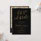 Este convite de formatura elegante moderno em preto e dourado "vamos celebrar" pode ser personalizado com os detalhes do seu graduado e foto especial no verso. Criado por Thisisnotme©