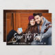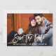 Script de Pincel Moderno Salve O Cartão com fotos De Anúncio Do Noivado De Data - Script Branco, Madeira Rústica De Volta