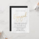 Convites na moda modernos de festas de noivado de casamento com fontes de moda de folha de ouro falsas, fundo de mármore branco e espaços reservados para suas informações de festa de noivado personalizadas. A parte traseira dos convites de festa de noivado dourada pode ser alterada para uma cor de sua escolha com a ferramenta Personalizar.