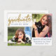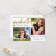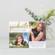 Uma camada de modelo de graduação horizontal no estilo de colagem moderna de 2 fotos com sotaques em uma elegante paleta de ouro branca e falso em champanhe metálico. O design da frente apresenta uma tipografia "formando" com script de pincel com letra chic e duas fotos, juntamente com o nome do formando, a escola e o ano de graduação. No verso, há listras de elogio e detalhes do evento. #certo #classe de2019