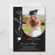 Festa de formatura de fotos Os Convites de Script Elegante Moderno apresentam sua foto favorita com o texto "Formando" em tipografia de script de caligrafia elegante em fundo preto. Adicione as informações de seu convite de graduação abaixo. Personalize editando o texto nas caixas de texto fornecidas. Enviar como um download digital instantâneo, como um convite físico por e-mail ou ambos. Criado por ©2025 Evco Studio www.zazzle.com/store/evcostudio