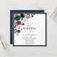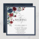Convite Script Floral de Aquarela Azul-Burgundy marinho