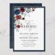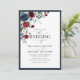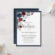 Convite Script Floral de Aquarela Azul-Burgundy marinho