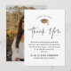 Cartão de Agradecimento de Graduação com Foto Preto e Branco Simples com tampa de folha dourada elegante e tipografia minimalista na frente. O verso tem uma grande foto do graduado. Clique no botão de edição para personalizar este design. Adicione facilmente uma foto ao verso.