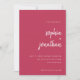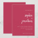 Estes elegantes e minimalistas convites de casamento apresentam tipografia branca moderna e texto limpo, sans serif para um simples e na moda magenta design vermelho que você vai amar.