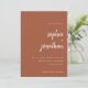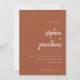 Estes elegantes e minimalistas convites de casamento apresentam tipografia branca, moderna escrita e texto limpo, sans serif para um simples e na moda terracotta design colorido que você vai amar.