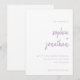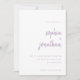Estes elegantes e minimalistas convites de casamento apresentam a tipografia moderna da escrita e o texto clássico do sans serif para um simples e na moda, roxo claro e design branco que você vai amar.