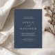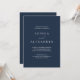 Celebre seu grande dia com estilo com este Convite de Casamento Azul de Marinho Elegante. Apresentando um fundo marinho profundo de eterno emparelhado com a tipografia branca moderna, esse design combina minimalismo e sofisticação para a primeira impressão perfeita. Totalmente personalizável, este convite permite personalizar nomes, datas, locais e detalhes para corresponder ao seu casamento. A versátil paleta de marinhos complementa os temas clássicos, costeiros e modernos do casamento, fazer-a uma escolha favorita para casais que buscam um luxo subestimado. Junte este convite à Coleção de Casamentos Azuis do Marinho Elegante de cheio, incluindo cartões RSVP, menus, programas, gráficos de assentos e cartões obrigado-você, para um suite de casamento coeso e polida.