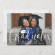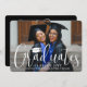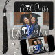 É uma festa de formatura comum! Anuncie a realização dos formandos e convide a família e os amigos a celebrarem com convites personalizados de festa de formatura comum. A imagem e todos os textos são simples de personalizar, e as cores podem ser personalizadas usando a ferramenta design Zazzle. Este modelo é uma placa de lançamento combinada na parte frontal com o convite de festas formando na parte traseira. O design moderno preto e branco apresenta uma caligrafia manuscrita de script com um boné de conselho de argamassa, uma elegante tipografia clássica e uma foto de sua escolha, como uma foto de mais velho ou imagem da cerimônia de início. Este convite de formatura é uma forma única de anunciar uma celebração especial para qualquer grupo de formandos, como irmãos, melhores amigos, primos, gêmeos, trigêmeos, etc. Parabéns aos formandos!