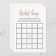 Este cartão de bingo de chá de panela moderno, preto e branco apresenta uma tipografia de script moderna em um visual falso de rosa de ouro e um layout simples e na moda.