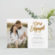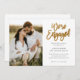 Este Convite de Festa de noivado moderno apresenta um roteiro dourado Estamos Envolvidos, uma fotografia vertical e detalhes de festa de noivado. Clique em editar para personalizar este design.