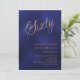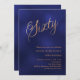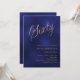 Um convite moderno e na moda para uma 60ª festa de aniversário. Um fundo azul marinho, incolor, e a palavra Sessenta escrita com letras elegantes e grandes em dourado falso. Personalize e adicione um nome e detalhes da parte.