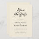 Um ambiente minimalista, moderno e claro, um fundo bege, uma caligrafia personalizável de guião preto, um design elegante para salvar a data. O bege pálido com a personalizável tipografia negra evoca uma sensação de elegância clássica.