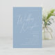 Apresentando nossa impressionante escrita caprichosa | convite à recepção de casamento azul empoeirado perfeito para a sua simples celebração do primavera boho moderno. Nosso elegante design inclui uma paleta de cores vibrante brilhante e pastel com um script de caligrafia quic vintage. Quer você prefira um estilo minimalista ou clássico, nosso produto editável exclusivo oferece luxo e elegância, perfeito para criar um toque clássico, ainda que romântico, para tornar seu dia especial inesquecível. Contacte-nos com quaisquer perguntas sobre o design, e deixe-nos ajudá-lo a fazer o casamento dos seus sonhos.