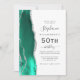 A borda esquerda deste elegante e moderno convite de aniversário 50º apresenta uma aquarela verde-marinha agatada com brilho de prata. O texto personalizável combina a escrita manual de cinzas de carvão, as fontes em copperplate e itálico em um fundo branco. Adicione instruções RSVP na parte traseira da placa, juntamente com um código QR que os convidados podem verificar para responder on-line.