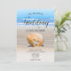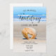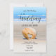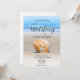 Um convite de casamento único com uma concha que tem uma forma natural. Um símbolo perfeito de amor para a celebração do amor. A concha é cercada por areia com ondas oceânicas à distância criando a imagem perfeita para o casamento na praia.