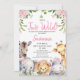 Floral cor-de-rosa Dois Animais Safari Selvagens Convite para segundos aniversários Cuta e levemente cartoon como watercolor safari dois convites de aniversário selvagens com cinco animais agudos de aquarelas safari, alguns eucaliptos verdes e flores cor-de-rosa. Todo o texto é editável fazer adequado para qualquer idade. Este safari de meninas, animais de dois anos selvagens, é uma forma doce de convidar hóspedes para um safari, animais de dois animais selvagens de festa de aniversário.