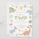 Este adorável convite de aniversário apresenta os meus dinossauros e folhas desenhados à mão.