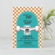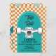 skate Dois segundos aniversários Rad convidam com verificação laranja e skate azul.