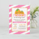 Pequenos e modernos convites para o segundo aniversário. Apresentando riscas brancas e cor-de-rosa diagonal, borda clara dourada falsa e abóboras cor de água laranja. Um convite para uma festa de aniversário do tema do outono.