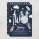 Super fofo Woodland Animal Space temático convite ao segundo aniversário. A design apresenta o título 'DOIS', que incorpora uma lua, decorada com animais adoráveis da floresta como astronautas, foguetes, estrelas e nuvens. O modelo de tendência é uma combinação de um elegante script escrito à mão e fontes brancas serif. Todo texto é fácil de personalizar usando o modelo fornecido.