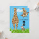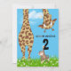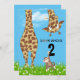 Uma girafa bonita na grama com um macaco e margaridas para convite para segundos aniversários. A idade pode ser alterada. O texto no verso é editável.