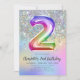 Glam Holographic Rainbow Glitter Foil Pastel Balão segundo aniversário Convite para Rapariga