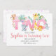 Convite segundo aniversário Rosa Safari Animais Selvagens
