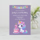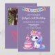 unicórnio bonito em fundo roxo com fotos da família para o convite de festas segundo aniversário de uma menina