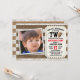 Convide seus hóspedes em estilo com este super legal convite de festas de segundo aniversário de futebol esportivo. Este design apresenta um fundo rústico de madeira marrom e branca, à esquerda está a fotografia do seu filho num quadro (o quadrado funciona melhor) e à direita está um bilhete com todas as suas informações pessoais. Diz, "O nosso Pequeno Quarterback está a fazer o Dois, Junte-se a nós para este Episódio de Aniversário épico, em honra de (nome do seu filho)", a data da festa e o endereço com o RSVP está abaixo. Uma bola de futebol substituiu a letra "O". A parte traseira do cartão tem listras marrons e brancas em uma madeira de meteoros correspondente. Este é um convite especial personalizado que sua família e amigos adorarão e guardarão como recordação. Elaborado por ©Susan Coffey e Tim Coffey. Fotografia © Storytree Studios, Stanford, CA.