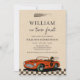 Prepare-se para uma emocionante comemoração do segundo aniversário com estes convites para carros de corrida vintage! Apresentando um carro de corrida clássico vermelho com uma estética retrô, esses convites são perfeitos para o segundo aniversário de um garoto com um tema de corrida.