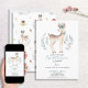 Seu bebê está virando um! Convide seus convidados especiais com este adorável convite de cervos da Floresta de Woodland apresentando veados pintados manualmente de aquarela. O nome do bebê, "um" e a data estão em uma combinação verde de tipografia escrita escrita escrita à mão, e personalizada em um sans moderno da música. A parte de trás do cartão inclui veados bebês e outros elementos florestais. Copyright Elegant Invites, todos os direitos reservados.