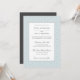 A onda de Seigaiha é um motivo ancestral japonês. O seigaiha ou onda é um padrão de círculos concêntricos em camadas criando arcos, simbólicos de ondas ou de água e representando ondas de boa sorte. Também pode significar poder e resiliência, elementos-chave da cultura japonesa. Convite Elegante e clássico de Casamento, com fonte cursiva e clássica em cor de cinza. Placa inversa para uma cinza escura coordenada que pode ser alterada para qualquer cor para corresponder ao seu esquema de cores. Perfeito para o casamento ou celebração no mar ou na praia em um local tropical ou costeiro.