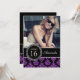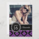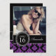 Garota, divertida, bonita, mas sofisticada e elegante, este Convite de festas personalizado de Glitter Damask 16, preto e roxo, com sua foto, é a forma perfeita de convidar seus convidados para a doce festa de 16 anos da sua filha.Nota: brilho é um efeito fotográfico IMPRESSO. Design de Elke Clarke©.