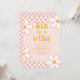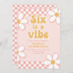 Seis é um convite de aniversário de 6 anos Groovy Girl retrô inspirado com fontes dos anos 70 e margaridas e padrão de xadrez.