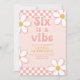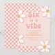 Seis é um clima Garota Groovy Retrô inspirado no convite de aniversário de 6 anos com fontes dos anos 70 e margaridas e padrão xadrez.