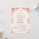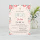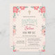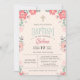 Creme, rosa claro, coral e tons verdes suaves adicionam um lindo esquema de cores florais a este convite. Adornado com uma cruz.