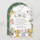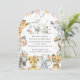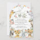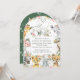 Convide amigos e família de estilo e dê o tom para o seu dia especial com este charmoso convite de aniversário. Design apresenta animais da selva (girafa, macaco, zebra, leão, elefante, chita, merkat, rinoceronte), flores de hibisco e folhas de eucalipto em fundo branco.