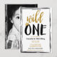 Convite Selvagem Preto + Foto Dourada 1 1º Aniversário