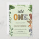 O convite ao primeiro aniversario apresenta caligrafia com letras bonitas em forma de animal e um fundo maravilhosamente arranjado adormecido com folhas tropicais e animais encantadores. É um jogo perfeito para a decoração de um aniversário selvagem do seu bebê. Além disso, você pode editá-lo sem esforço usando o botão personalizado ou a ferramenta "editar usando o design." Também é possível alterar o tipo de papel de acordo com o orçamento.