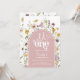 Um jardim selvagem floresce primeiro convite de aniversário. Belo design moderno elegante com sotaques botânicos pintados à mão. Possui flores silvestres de cor aquática delicada, arco de tendências, tipografia retro fonte um e roteiro com coração. Tendy Bohemian é perfeito para primavera ou festa de jardim de primeiro aniversario de verão. Você pode escolher convites impressos e/ou fazer o download instantâneo do modelo digital. Perfeito para uma festa feminina na moda.