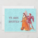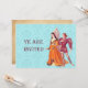 Convites com uma ilustração vintage de um senhor e uma senhora medievais. O texto diz: "Vocês estão convidados."